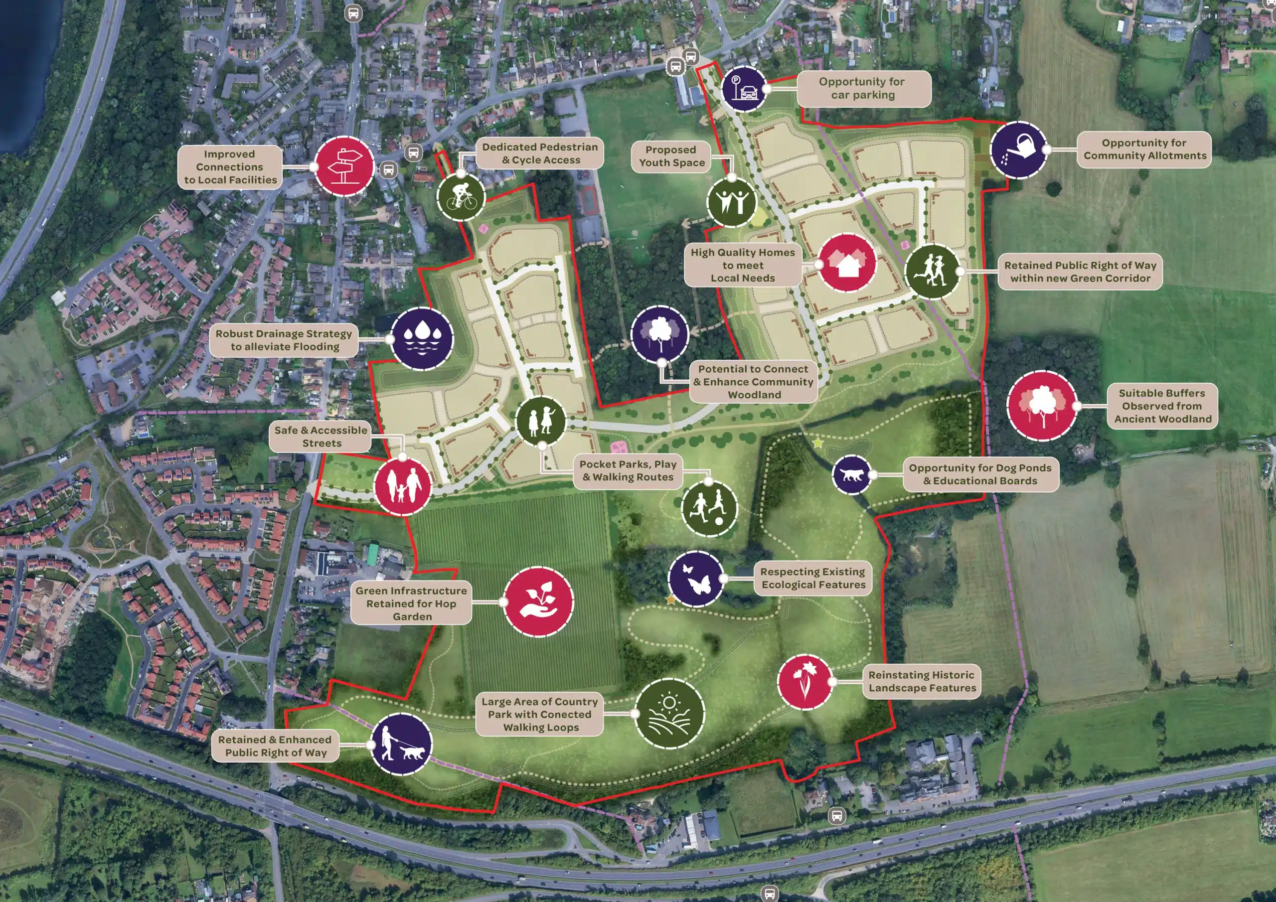 The proposals seek to create a new neighbourhood which celebrates the existing character within Tongham and will include the following key benefits: